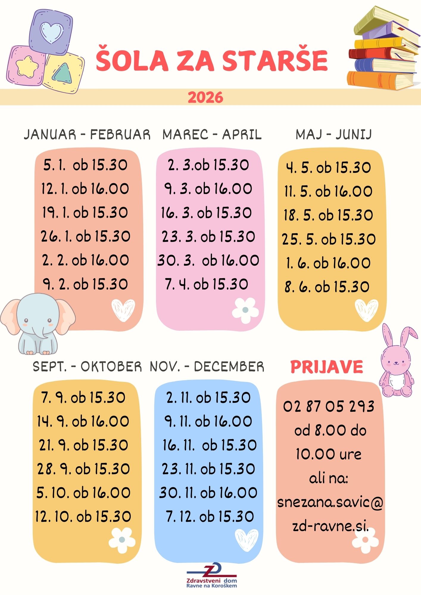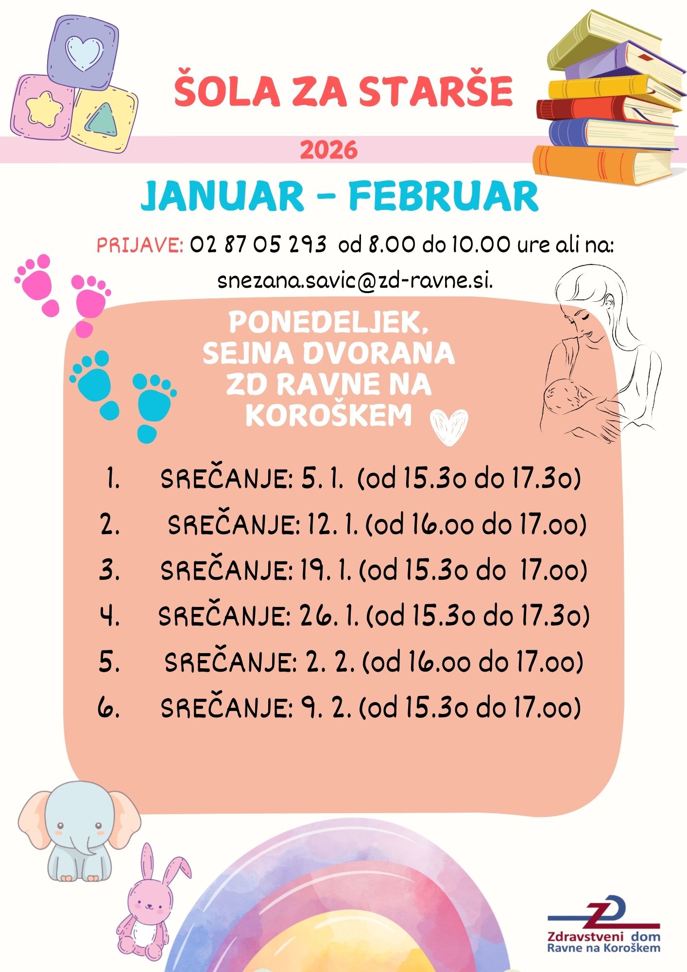 Celoten razpored srečanj najdete v zloženki »Priprava na porod in starševstvo 2026«. Prejeli ste jo v ginekološki ambulanti, dostopna je tudi na spodnji povezavi.